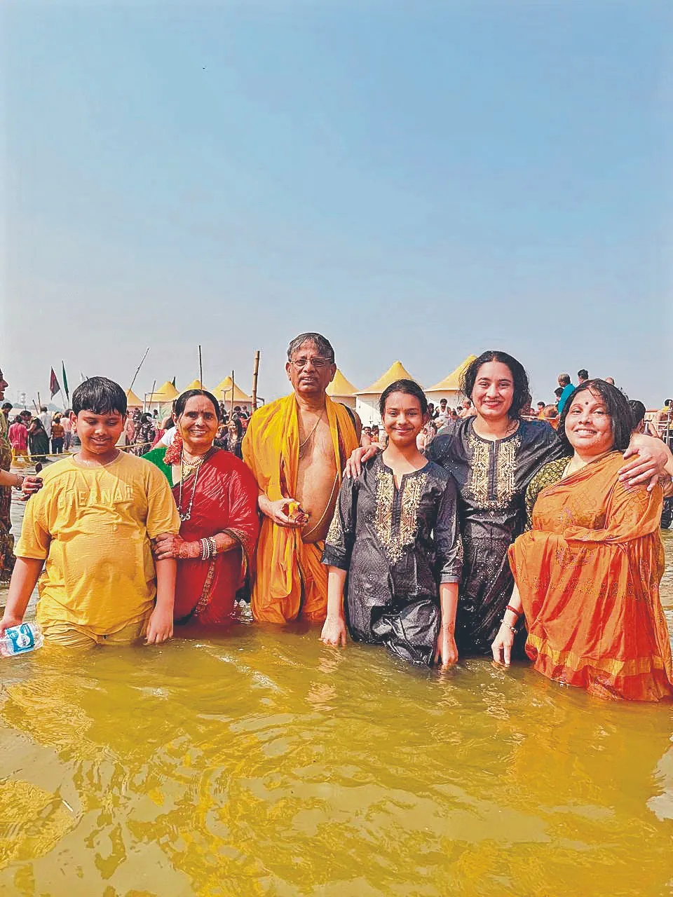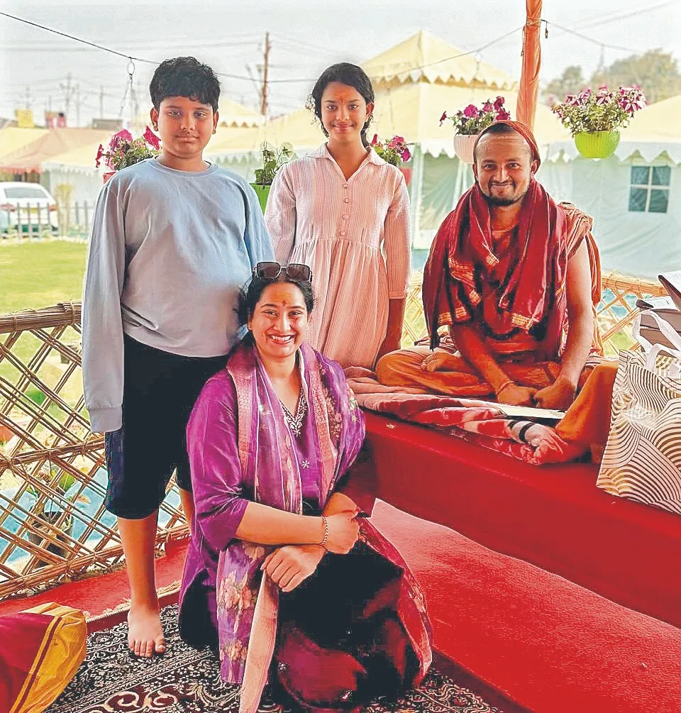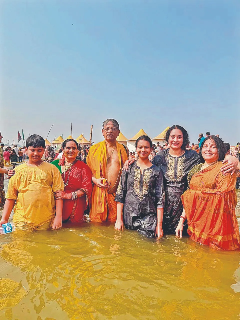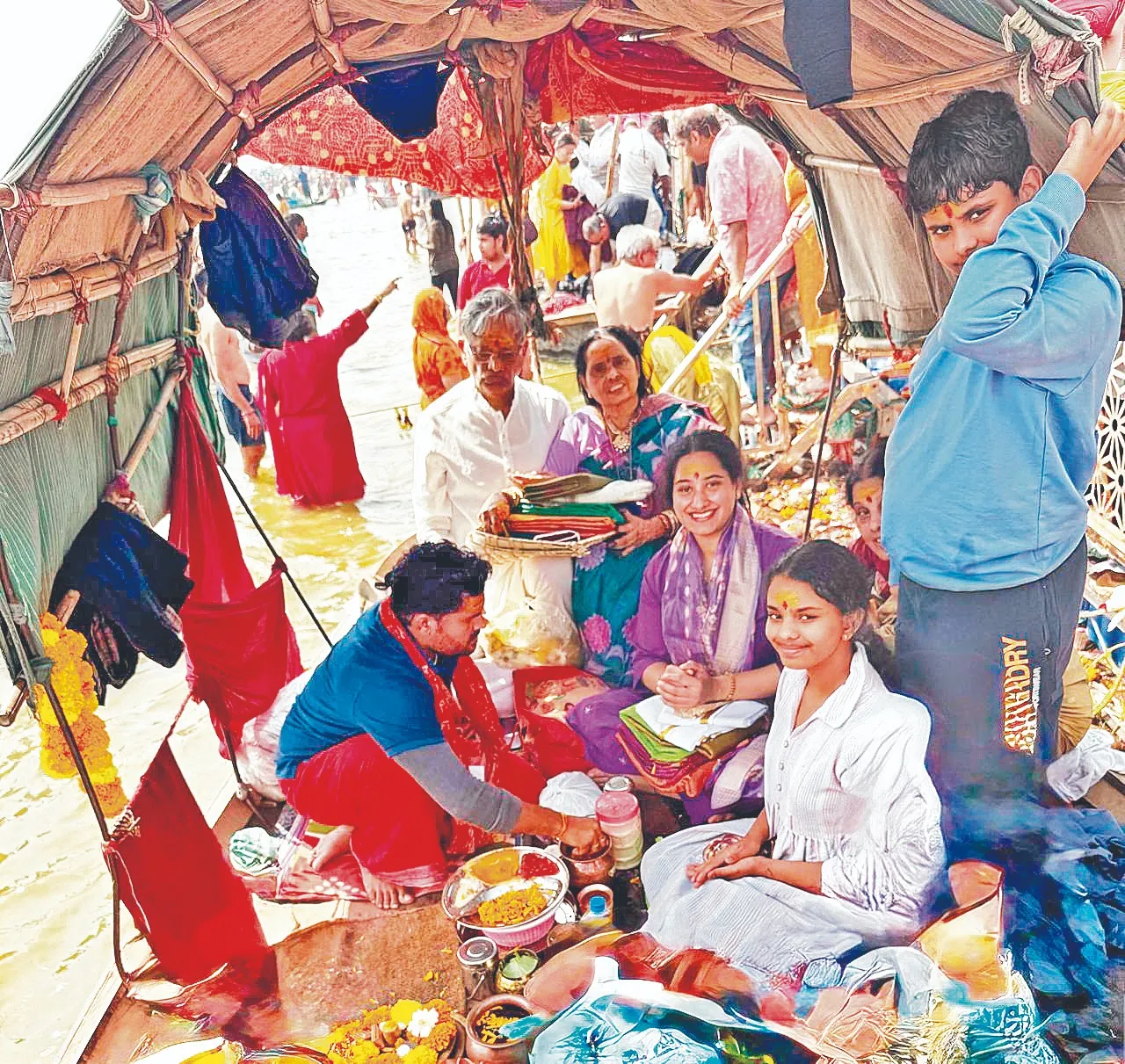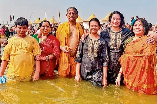ప్రయాగ్రాజ్ త్రివేణీ సంగమంలో పుణ్యస్నానమాచరిస్తున్న ‘విజయక్రాంతి’ దినపత్రిక చైర్మన్ సీఎల్ రాజం, మేనేజింగ్ డైరెక్టర్ విజయారాజం, డైరెక్టర్ సౌమ్య, మనుమరాలు శ్రీనిధి, మనుమడు శ్రీనందన్ బుధవారం ప్రయాగ్రాజ్లో ఉత్తరాఖండ్ జ్యోతిర్మఠ్ శంకరాచార్య అవిముక్తేశ్వరానంద్ సరస్వతి శిష్యుడు స్వామి ముకుందానంద్ ఆశీర్వచనం తీసుకుంటున్న ‘విజయక్రాంతి’ దినపత్రిక చైర్మన్ సీఎల్ రాజం, మేనేజింగ్ డైరెక్టర్ విజయారాజం, డైరెక్టర్ సౌమ్య ప్రయాగ్రాజ్ త్రివేణి సంగమంలో ప్రమోద్ అగర్వాల్, కల్యాణి అగర్వాల్, ‘విజయక్రాంతి’ డైరెక్టర్ సౌమ్య, లేఖ తదితరులు