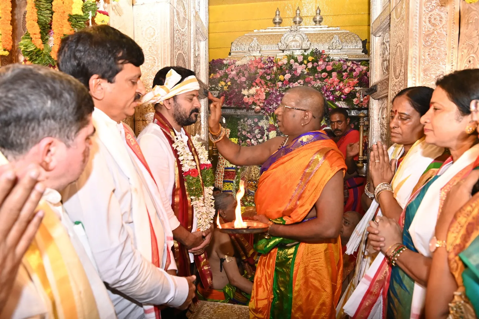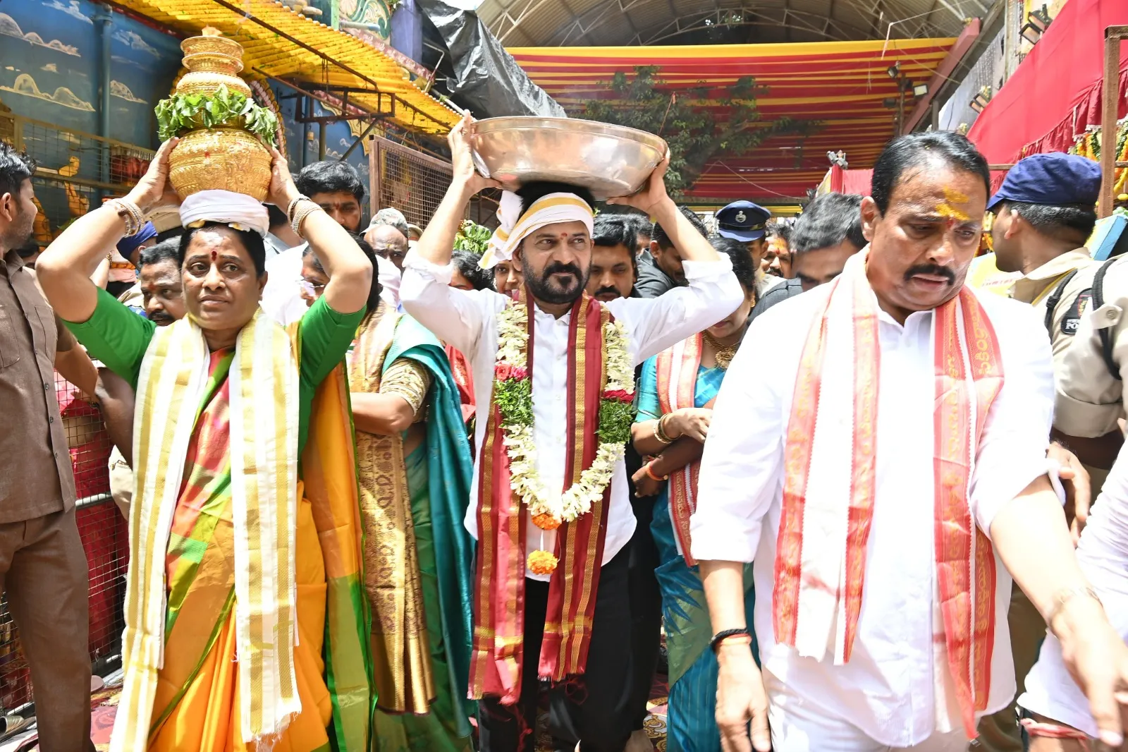 ఆషాఢమాసం బోనాలు ఉత్సవాల్లో భాగంగా సికింద్రాబాద్ లోని ఉజ్జయిని మహంకాళి అమ్మవారిని సీఎం రేవంత్ రెడ్డి దర్శించుకున్నారు. తెలంగాణ దేవాదాయ శాఖ మంత్రి కొండా సురేఖతో కలిసి ఆయన అమ్మవారికి పట్టు వస్త్రాలు సమర్పించి ప్రత్యేక పూజలు చేశారు. ఆలయ అర్చకులు సీఎం రేవంత్ కు పూర్ణకుంభంతో స్వాగతం పలికారు.