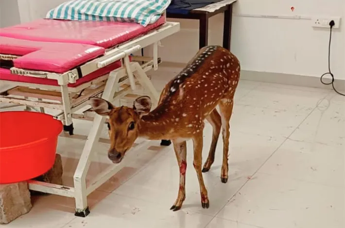 నాగర్ కర్నూల్ ఫిబ్రవరి 8 ( విజయక్రాంతి )అటవీ ప్రాంతంలో ఉండాల్సిన జింక నాగర్ కర్నూల్ పట్టణ నడిబొడ్డున అర్ధరాత్రి దర్శనం ఇవ్వడం తీవ్ర కలకలం రేపుతుంది. శుక్రవారం అర్ధరాత్రి సుమారు 12 గంటల ప్రాంతంలో వీధి కుక్కలు వెంబడించడంతో ఓ షాపింగ్ మాల్ ఎదురుగా ఉన్న ప్రైవేటు ఆసుపత్రిలోకి పరుగులు పెట్టింది. ఇది గమనించిన సిబ్బంది పోలీసులకు సమాచారం ఇవ్వడంతో అటవీ శాఖ అధికారులకు సమాచారం ఇచ్చారు. కుక్క కాటుకు రక్త గాయాలు, తీవ్ర ఆందోళన కరంగా ఉన్న ఆ జింకకు పశువైద్యాధికారుల సహాయంతో వైద్యం అందించాల్సి ఉంది.