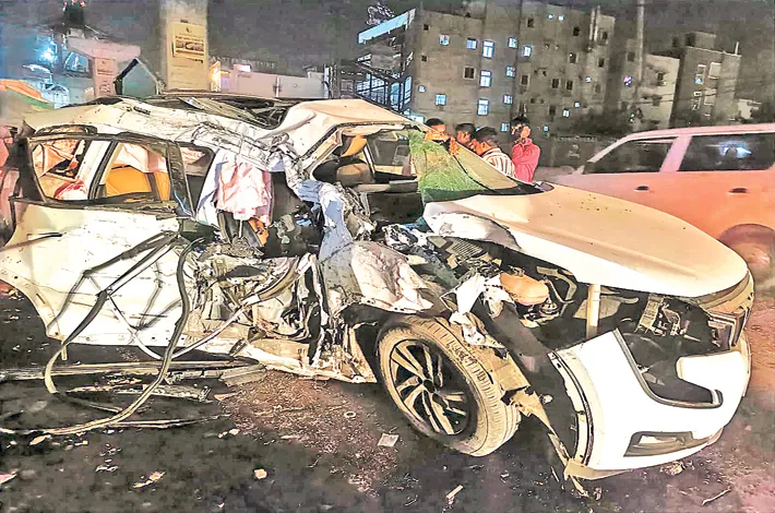 మేడిపల్లిలో నిర్మాణంలో ఉన్న ఫ్లైఓవర్ పిల్లర్ను ఢీకొట్టడంతో ప్రమాదం