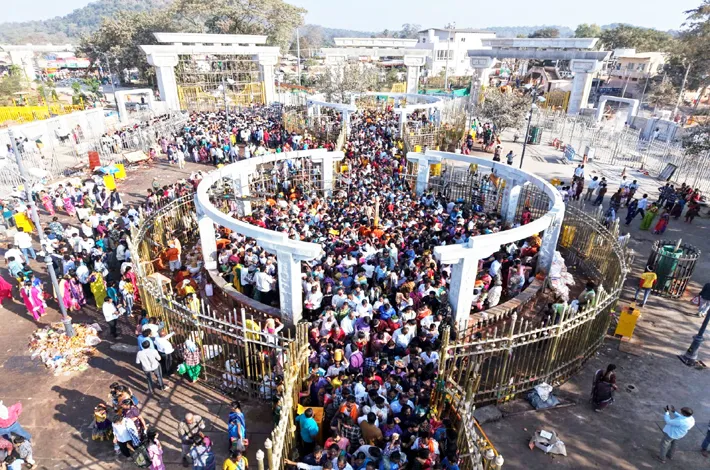 మధ్యాహ్నం రద్దీతో గద్దెల గ్రిల్ బయట నుంచే దర్శనం