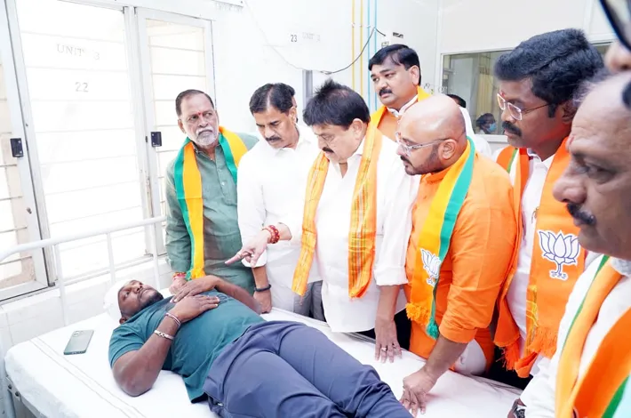 అనంతరం మీడియాతో మా ట్లాడారు. చండూర్లో పోటీ చేస్తున్న బీజేపీ నాయకులపై కాంగ్రెస్ నాయకులు వారి గుండాలతో దాడులు చేయించారని ఆరోపించారు. సరైన వైద్యం అందకుండా కాంగ్రెస్ నాయకులు వైద్యులపై తీవ్ర ఒత్తిడి తెచ్చారని ఆరోపించారు. కాంగ్రెస్కు వచ్చే ఎన్నికల్లో సరైన గుణపాఠం చెప్పేందుకు ప్రజల సిద్ధంగా ఉన్నారన్నారు. బీజేపీ జిల్లా అధ్యక్షుడు నాగం వర్షిత్రెడ్డిపై నల్లగొండ డీఎస్పీ దాడి, చండూరులో కాంగ్రెస్ దాడిపై డీజీపీకి ఫిర్యాదు చేసినట్లు తెలిపారు.