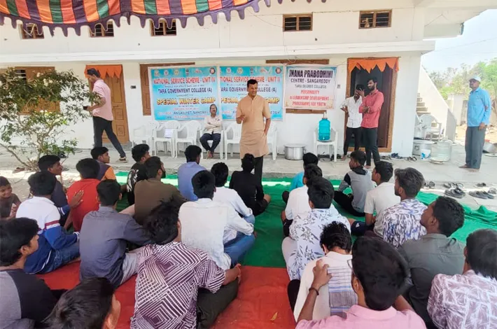 సంగారెడ్డి, మార్చి 29 : కేంద్ర మానవ వనరులు, యువజన వ్యవహారాల శాఖ సహకారంతో తారా ప్రభుత్వ కళాశాల, సంగారెడ్డి ఎన్ఎస్ఎస్ విభాగాలు 2, 3, 4 ఆధ్వర్యంలో కలవకూర్, మల్కాపూర్, అంగడిపేట గ్రామాలలో నిర్వహిస్తున్న ప్రత్యేక శీతాకాల శిబిరాలలో భాగంగా నా యకత్వ లక్షణాలు నైపుణ్యాల అభివృద్ధి అంశంపై ఆదివారం ప్రత్యేక అవగాహన కార్యక్రమం నిర్వహించారు. ఈ కార్యక్రమాన్ని సోలాపూర్కు చెందిన జ్ఞాన ప్రబోధిని సంస్థ ఆధ్వర్యంలో నిర్వహించినట్లు కళాశాల ప్రిన్సిపల్ డాక్టర్ ప్రవీణ తెలిపారు.