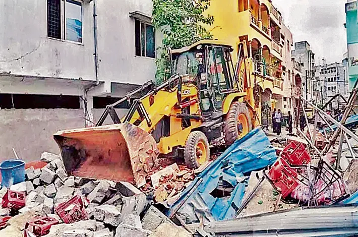 -పోలీసు బందోబస్తు నడుమ ఆక్రమణల కూల్చివేత