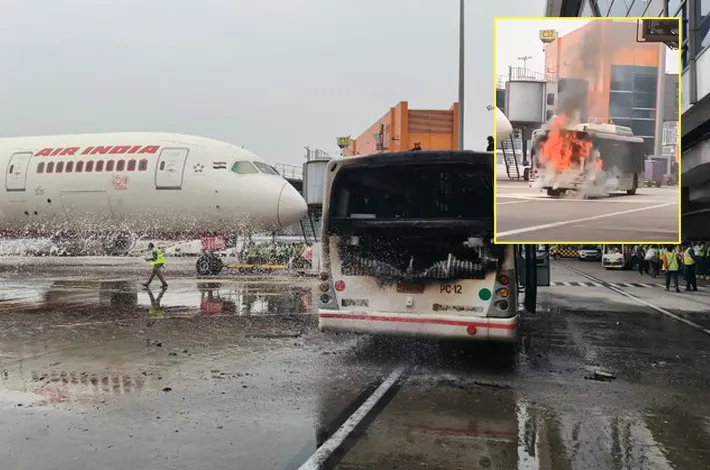 ఎయిర్ ఇండియా బస్సులో మంటలు