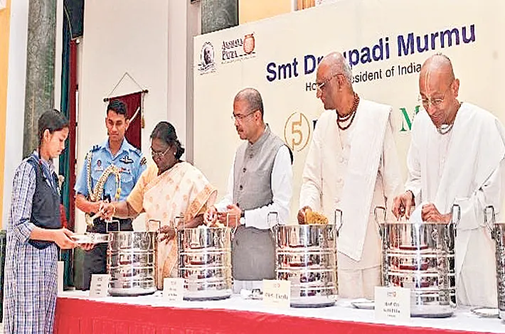 అక్షయపాత్ర స్థాపకుడు, చైర్మన్ మధు పండిట్ దాస, వైస్ చైర్మన్ చంచల పతిదాస, తెలంగాణ అధ్యక్షుడు సత్య గౌర చంద్ర దాస సమక్షంలో జరిగింది. వికసిత్ భారత్ కోసం సుపోషిత, సుశిక్షిత భారత్ అనే అంశంతో జరిగిన ఈవేడుకలో ట్రస్టీలు, ప్రభుత్వ ఉన్నతాధికారులు, ప్రజావిధాననిపుణులు, దాత లు, విద్యార్థులు, తల్లిదండ్రులు, ఉపాధ్యాయులు హాజ రయ్యారు. ఈ సందర్భంగా రాష్ట్రపతి విద్యార్థులకు బహుమతులు అందజేసి, భోజనం వడ్డించారు.
