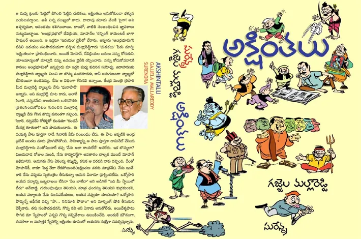 హైదరాబాద్ సిటీ, ఫిబ్రవరి ౨౧ (విజయక్రాంతి): హైదరాబాద్లోని సోమాజిగూడ ప్రెస్ క్లబ్లో ఆదివారం ఉదయం 10:30 గంటలకు ప్రముఖ కార్టూనిస్ట్ సురేంద్ర వెలువరించిన ‘అక్షింతలు’ అనే పుస్తకావిష్కరణ సభ జరుగనుంది. కార్టూనిస్ట్ సురేంద్ర కార్టూన్లకు సంపాదకుడు (దివంగత) గజ్జెల మల్లారెడ్డి భాష్యం చెప్పిన పుస్తకమిది. వ్యంగ్య చిత్రాలు, సామాజిక అంశాల కలబోతగా పుస్తకం రూపుదిద్దుకున్నది. సభకు మందలపర్తి కిషోర్ అధ్యక్షత వహిస్తారు.