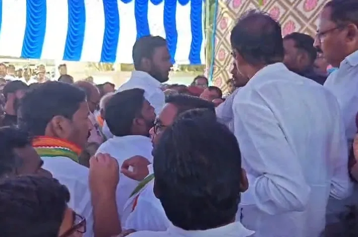 బెల్లంపల్లి (విజయక్రాంతి): మంచిర్యాల జిల్లా బెల్లంపల్లి ఎమ్మెల్యే గడ్డం వినోద్ తీరుపై మరోసారి అసమ్మతి భగ్గుమన్నది. ఎమ్మెల్యే ప్రధాన అనుచర గణంపై పేరుకుపోయిన అసంతృప్తి ఒక్కసారిగా బద్దలైంది. గురువారం బెల్లంపల్లి క్యాంపు కార్యాలయంలో ఆవరణలో నూతనంగా గెలిచిన కాంగ్రెస్ సర్పంచులకు సన్మానం చేశారు. ఎమ్మెల్యే గడ్డం వినోద్ ఆధ్వర్యంలో ఈ సన్మానం జరిగింది. ఇక్కడ వరకు బాగానే ఉంది. తాండూరు మండలంలో ఎన్నికల సందర్భంలో తలెత్తిన గ్రూపు విబేధాలు సమావేశంలో భగ్గుమన్నాయి. ఆధిపత్య గొడవలు సమావేశాన్ని రసాభస చేశాయి. రెండు వర్గాల మధ్య తోపులాట జరిగి వేదికపై గందరగోళం నెలకొంది.