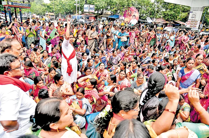 పోలీసులు వందలాది మంది ని అరెస్ట్ చేసి పలు పోలీస్ స్టేషన్లకు తరలించారు. గత కొంతకాలంగా పెండింగ్లో ఉన్న తమ సమస్యలను పరిష్కరించాలని కోరుతూ అంగన్వాడీలు ఆందోళన చేస్తున్నారు. ప్రభుత్వం మొండిగా వ్యవహరి స్తుండటంతో చలో సెక్రటేరియట్ కార్యక్రమానికి పిలుపునిచ్చారు. ఈ ఆందోళనను అడ్డుకునేందుకు పోలీసు లు విశ్వప్రయత్నాలు చేశారు. అన్ని జిల్లాల్లో ముందస్తు గానే వేలాది మంది అంగన్వాడీలను అరెస్ట్ చేసి పోలీస్ స్టేషన్లకు తరలించారు. అయి నా, పోలీసుల నిర్బంధాన్ని ఛేదించుకుని వేలాది మంది అంగన్ వాడీలు హైదరాబాద్కు చేరుకుని సచివాలయం ప్రధాన గేటు వద్దకు చేరుకున్నారు.
