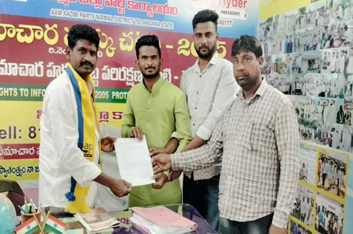 నిర్మల్,(విజయక్రాంతి): నిర్మల్ జిల్లా కేంద్రంలోని ఆమ్ ఆద్మీ పార్టీ కార్యాలయంలో జిల్లా అధ్యక్షులు సయ్యద్ ఆధ్వర్యంలో పోటీ చేస్తే అభ్యర్థుల నుంచి దరఖాస్తుల స్వీకరించారు. పార్టీ నిబంధనల ప్రకారం... స్థానిక కౌన్సిలర్ పదవుల కోసం ఆశావహుల నుండి దరఖాస్తులను స్వీకరిస్తున్నారు. ఈ క్రమంలో భాగంగా, 23వ వార్డు కౌన్సిలర్ అభ్యర్థిగా మహ్మద్ అజారుద్దీన్ నేడు తన దరఖాస్తును సమర్పించారు.