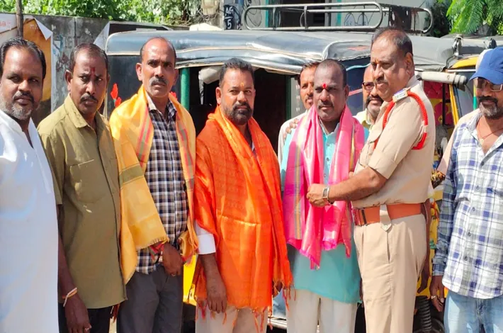 మెట్ పల్లి (విజయక్రాంతి): జగిత్యాల జిల్లా ఆటో యూనియన్ నాయకులుగా మెట్ పల్లికి చెందిన వారు ఎన్నిక కావడంతో వారిని బుధవారం పట్టణ రెండవ ఎస్ఐ రాజు నాయక్ సన్మానం చేశారు. బస్ డిపో చౌరస్తా ఆటో యూనియన్ కు చెందిన గుగులావత్ శివలాల్ నాయక్ జిల్లా నూతన అధ్యక్షులుగా, జనరల్ సెక్రెటరీగా రంగు సంపత్ గౌడ్, ఉపాధ్యక్షులుగా వెంకటరమణ ఎన్నికైన సందర్భంగా మెట్ పల్లి బస్ డిపో ఆటో చౌరస్తా అసోసియేషన్ వద్ద ఎస్సై వారిని శాలువతో సన్మానం చేసి అభినందించారు. అనంతరం ఎస్సై మాట్లాడుతూ ట్రాఫిక్ నిబంధనలు పాటిస్తూ డ్రైవింగ్ చేయాలని, ప్రతి ఒక్కరు ఇన్సూరెన్స్ చేసుకోవాలని డ్రైవింగ్ లైసెన్స్ కు సక్రమంగా ఎప్పటికప్పుడు రెన్యువల్ చేసుకోవాలని తెలిపారు. ఈ కార్యక్రమంలో ఉపాధ్యక్షులు నరేందర్, కోశాధికారి లక్ష్మణ్, ఐలయ్య, కనకయ్య, రామ్ రెడ్డి నారాయణ, శ్రీనివాస్, పరుశురాం, దాసరి బుచ్చయ్య తదితరులు పాల్గొన్నారు.