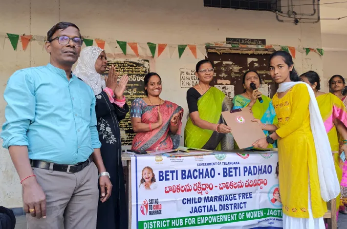 మెట్ పల్లి (విజయక్రాంతి): మహిళాభివృద్ధి శిశు సంక్షేమశాఖ ఆధ్వర్యంలో పట్టణంలోని ప్రభుత్వ పాఠశాలల్లో బాల్య వివాహాలపై బుధవారం అవగాహన కార్యక్రమం నిర్వహించడం జరిగింది. ఈ సందర్బంగా ఐసిడిఎస్ సిడిపిఓ మణెమ్మ, అంగన్వాడి సూపర్వైజర్ ప్రతిభ మాట్లాడారు. బాల్య వివాహ చట్టం- 2006, పోక్సో చట్టం-2012, మత్తు పదార్థాలు మాదకద్రవ్యాలపై అవగాహన కల్పించడం జరిగింది. బాల్య వివాహాల నిరోధక చట్టం-2006 ప్రకారం 18 సంవత్సరాలలోపు అమ్మాయికి 21 సంవత్సరంలోపు అబ్బాయికి వివాహాలు చేయడం చట్టరీత్యా నేరమని తెలిపారు.