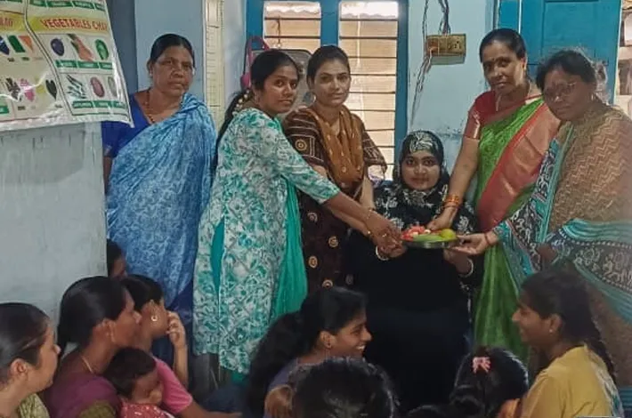 ఈ సందర్భంగా వారు మాట్లాడుతూ ప్రతి ఒక్కరూ పోషక విలువలు అధికంగా ఉన్న ఆహారాన్ని తీసుకోవాలని, ముఖ్యంగా మినరల్స్, విటమిన్లు అధికంగా ఉండే ఆహార పదార్థాలు, పండ్లు తీసుకోవాలని సూచించారు. గర్భిణీలు, బాలింతలు , చిన్న పిల్లల తల్లులు సరైన సమయంలో ఆహారం తీసుకోవడం చాలా ముఖ్యమని తెలిపారు.అధికంగా టెన్షన్ తీసుకోవడం ఆరోగ్యానికి హానికరమని, ముఖ్యంగా టీవీ సీరియల్స్ చూస్తూ , ఆందోళనతో ఆహారం తీసుకోవడం వల్ల శరీరంలోని హార్మోన్లపై ప్రభావం పడుతుందని వారు వివరించారు. అందువల్ల ప్రశాంతంగా, సమయానికి ఆహారం తీసుకోవాలని సూచించారు.అంగన్వాడి కేంద్రాల ద్వారా అందిస్తున్న పోషకాహార పదార్థాలను గర్భిణీలు, బాలింతలు మరియు పిల్లలు తప్పకుండా వినియోగించుకోవాలని తెలిపారు.ఈ కార్యక్రమంలో ఫైనాన్షియల్ లిటరసీ స్పెషలిస్ట్ సాగర్, అంగన్వాడి టీచర్లు రజిని, శోభ, ఆయాలు కాంతాబాయి, స్వప్న తదితరులు పాల్గొన్నారు.