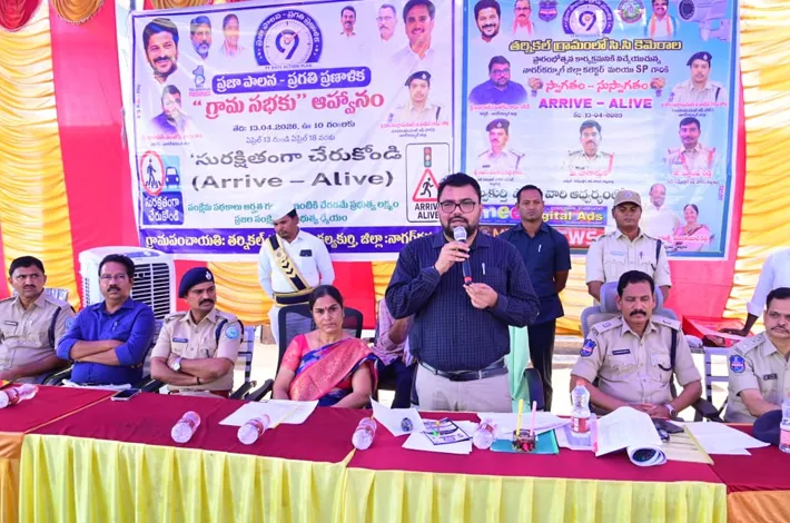 కల్వకుర్తి: నాగర్ కర్నూల్ జిల్లావ్యాప్తంగా రోడ్డు ప్రమాదాల నివారణకు అరైవ్ అలైవ్ కార్యక్రమాలను నిర్వహిస్తున్నామని కలెక్టర్ బాదావత్ సంతోష్ అన్నారు. తెలంగాణ రాష్ట్ర ప్రభుత్వం ప్రతిష్టాత్మకంగా అమలు చేస్తున్న 99 రోజుల ప్రజాపాలన – ప్రగతి ప్రణాళిక భాగంగా నిర్వహిస్తోన్న అరైవ్ - అలైవ్ కార్యక్రమాన్ని కల్వకుర్తి మండలం తర్మికల్ గ్రామపంచాయతీలో సోమవారం నిర్వహించారు. ఈ, సందర్భంగా ఆయన పాల్గొని మాట్లాడారు. ప్రజల భాగస్వామ్యంతోనే రోడ్డు భద్రత సాధ్యమవుతుందని, ప్రతి ఒక్కరూ ట్రాఫిక్ నియమాలను కచ్చితంగా పాటించడం ద్వారా ప్రమాదాలను గణనీయంగా తగ్గించవచ్చని తెలిపారు. గ్రామ సర్పంచ్ వరలక్ష్మి స్వంత నిధులతో ఏర్పాటు చేసిన సీసీ కెమెరాలను ప్రారంభించారు. గ్రామ భద్రత, రోడ్డు ప్రమాదాల నివారణలో సాంకేతిక పరిజ్ఞానం పాత్ర ఎంతో ముఖ్యమని ఆయన పేర్కొన్నారు.