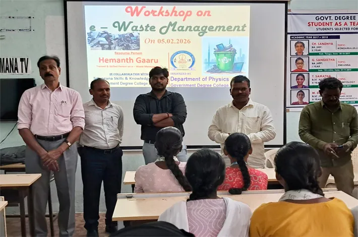మెదక్, ఫిబ్రవరి 5 (విజయ క్రాంతి) :ప్ర భుత్వ డిగ్రీ కళాశాల మెదక్లో విద్యార్థుల్లో ఎ లక్ట్రానిక్ వ్యర్థాల (E-Waste) పట్ల అవగాహన కల్పించాలన్న ఉద్దేశంతో ఈ-వేస్ట్ మేనే జ్మెంట్ అనే అంశంపై ఒక అవగాహన కార్యశాలను నిర్వహించినట్లు కళాశాల ప్రిన్సిపల్ ప్రొఫెసర్ హుస్సేన్ తెలిపారు.ఈ కార్యక్రమాన్ని కళాశాలలోని భౌతిక శాస్త్ర విభాగం, తెలంగాణ స్కిల్స్ అండ్ నాలెడ్జ్ సెంటర్ (TSKC) వారు సంయుక్తంగా నిర్వహించార ని ఆయన పేర్కొన్నారు.