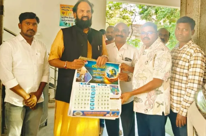 కోదాడ: తెలంగాణ రాష్ట్ర నీటిపారుదల పౌరసరఫరాల శాఖ మంత్రి నలమాద ఉత్తమ్ కుమార్ రెడ్డి బాప్టిస్ట్ చర్చి నూతన సంవత్సర క్యాలెండర్ను ఆవిష్కరించినట్లు బాప్టిస్ట్ చర్చి పాస్టర్ యెషయా గురువారం ఓ ప్రకటనలో తెలిపారు. ఈ సందర్భంగా హైదరాబాద్లోని మంత్రి నివాసంలో ఆయనను మర్యాదపూర్వకంగా కలసి క్యాలెండర్ను వారి చేతుల మీదుగా ఆవిష్కరింపజేశారు. తెలంగాణ రాష్ట్ర ప్రజలందరికీ నూతన సంవత్సర శుభాకాంక్షలు తెలియజేశారు. నూతన సంవత్సరంలో ప్రజల జీవితాల్లోని కష్టాలు తొలగి ఆనందంగా, చిరునవ్వుతో జీవించాలని ఆకాంక్షించారు.