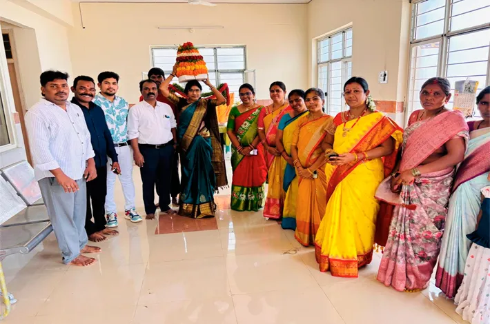 ఆసుపత్రి ముందు మహిళా సిబ్బంది అంద రూ కలిసి పూలతో బతుకమ్మలను పేర్చి ఆటపాటలాడారు. వైద్య విధాన పరిషత్ సంచాలకులు రమేష్ చంద్ర హాజరయ్యారు.