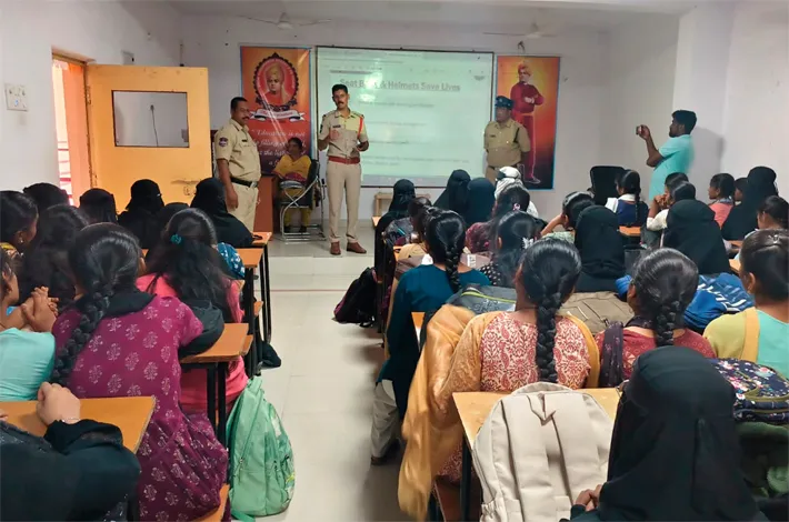 అదనంగా డిఫెన్సివ్ డ్రైవింగ్ ప్రాముఖ్యతను వివ రించి, ప్రమాదాలను ముందుగానే ఊహించడం, వేగ నియంత్రణ, సురక్షిత దూరం పాటించడం, డ్రైవింగ్ సమయంలో మొబైల్ ఫోన్ వినియోగాన్ని నివారించడం మరియు వర్షం, పొగమంచు, రాత్రి వేళల్లో ప్రత్యేక జాగ్రత్తలు తీసుకోవాలని సూచించారు.విద్యార్థులు ట్రాఫిక్ నియమాలను కచ్చితంగా పాటించి తమతో పాటు ఇతరుల ప్రాణాలను కాపాడాలని పోలీసులు సూచించారు. ఈ కార్యక్రమం ద్వారా యువతలో రోడ్డు భద్రతపై చైతన్యం పెంపొందించడం లక్ష్యంగా ఉందని తెలిపారు. ఈ కార్యక్రమంలో పోలీసులు విద్యార్థులు ఉన్నారు.