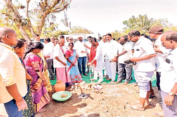 చిన్న చింతకుంట, ఫిబ్రవరి 20: మండల మండల కేంద్ర పరిధిలోని పల్లమర్రి గ్రామంలో శుక్రవారం రూ 10 లక్షల నిధులతో మహిళా సమైఖ్య భవన నిర్మాణానికి నిర్వహించిన భూమి పూజ కార్యక్రమంలో ముఖ్యఅతిథిగా దేవరకద్ర ఎమ్మెల్యే జి. మధుసూదన్ రెడ్డి హాజరై భూమి పూజ చేశారు. ఎమ్మెల్యే మాట్లాడుతూ.. ప్రభుత్వం గ్రామ అభివృద్ధికి కృషి చేస్తోందని చెప్పారు.