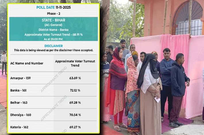 పాట్నా: బీహార్లోని 122 అసెంబ్లీ నియోజకవర్గాల్లో మంగళవారం పోలింగ్ ప్రశాంతంగా ముగిసింది. 3.7 కోట్ల మంది ఓటర్లలో ఇవాళ సాయంత్రం 5 గంటల వరకు నియోజకవర్గాలలో 67.14 శాతం మంది తమ ఓటు హక్కును వినియోగించుకున్నారు. 20 జిల్లాల్లోని 122 కీలక నియోజకవర్గాల్లో చివరి దశ పోలింగ్ ఉదయం 7 గంటలకు ప్రారంభమై సాయంత్రం 5 గంటల వరకు కొనసాగింది. బీహార్ అసెంబ్లీ ఎన్నికల రెండవ దశ పోలింగ్లో కిషన్గంజ్ 76.26 శాతం పోలింగ్తో అగ్రస్థానంలో ఉండగా, కతిహార్ (75.23 శాతం), పూర్ణియా (73.79 శాతం), సుపాల్ (70.69 శాతం), పూర్వి చంపారన్ (69.31 శాతం) తర్వాతి స్థానాల్లో ఉన్నాయి.