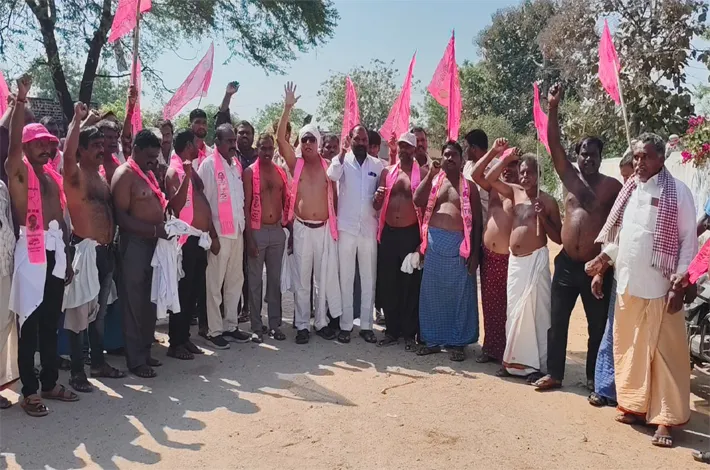 కొత్తగూడెం గ్రామ అంబేద్కర్ విగ్రహం వద్ద బిఆర్ఎస్ శ్రేణుల అర్ధనగ్న ప్రదర్శన.