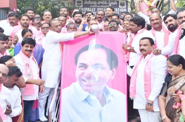 కెసిఆర్ చిత్రపటానికి పాలాభిషేకం చేసిన మాజీ మంత్రి మల్లారెడ్డి, మాజీ మేయర్ జక్క వెంకటరెడ్డి