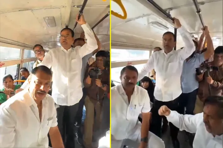 చార్జీల భారం ప్రయాణికులపై ఎలా ఉందో ప్రత్యక్షంగా తెలుసుకునేందుకు నాంపల్లి ఎగ్జిబిషన్ గ్రౌండ్(Nampally Exhibition Ground) నుంచి అసెంబ్లీ వరకు ఆర్టీసీ బస్సులో ప్రయాణించిన బీఆర్ఎస్ ఎమ్మెల్యేలు సుధీర్ రెడ్డి, కాలేరు వెంకటేష్, ముఠా గోపాల్ నిరసన తెలిపారు. చార్జీల పెంపుపై ప్రయాణికులు తమ నిరసన వ్యక్తం చేశారు. పేదలపై నెలకు ఐదు వందల రూపాయల దాకా అదనపు భారం పడుతుందని ప్రయాణికులు వాపోయారు. కాంగ్రెస్ ప్రభుత్వానికి వ్యతిరేకంగా ఎమ్మెల్యేలతో కలిసి ప్రయాణికులు నినాదాలు చేశారు.