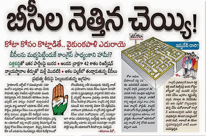 ఎన్నికలొచ్చాక బీసీ రిజర్వేషన్ల కోసం సర్వశక్తులు ఒడ్డామని, కేంద్రంలో అధికారంలో ఉన్న బీజేపీ రిజర్వేషన్లకు సహకరించలేదని ప్రజల్లోకి తీసుకెళ్లి మెజార్టీ స్థానాలను గెలుచుకోవాలని కాంగ్రెస్ ఆలోచనచేస్తున్నట్లుగా తెలుస్తోంది. మరోవైపు బీసీ రిజర్వేషన్లకు వ్యతిరేకంగా దాఖలైన పిటిషన్లలో బీఆర్ఎస్ పార్టీ ఇంప్లీడ్ కాలేదని, బీసీల పట్ల ఆ పార్టీకి చిత్తశుద్ధి లేదని బలంగా వాయిస్ను వినిపించే అవకాశం ఉంది.