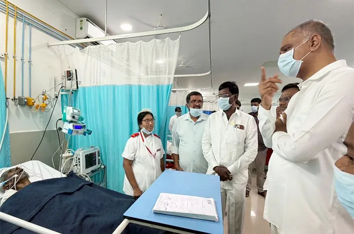 ఐసియులో గత ప్రభుత్వంలోనే ఒక్కో మిషన్ కి రూ.12 లక్షలు విలువైన పరికరాలు ఏర్పాటు చేశామని అవి ఉపయోగంలో ఉన్నాయా లెవా అని, ఒక్కో పెషేంట్ కు రోజుకి రూ.50వేలు ఖర్చు లేకుండా ఏర్పాటు చేశామని గుర్తు చేసారు. క్యాన్సర్ ఆసుపత్రి లో మెరుగైన సేవలు అందించాలని, అందులో పని చేసే ఉద్యోగులకు 3నెలలుగా జీతాలు రావడం లేదన్నారు. జిల్లా వైద్య అధికారితో మాట్లాడి వేంటనే వారి జీతాలు చెల్లించాలని చెప్పారు. ఆసుపత్రి లో ఆత్మీయంగా మాట్లాడటంతో రోగులు సంతోషం వ్యక్తం చేశారు.