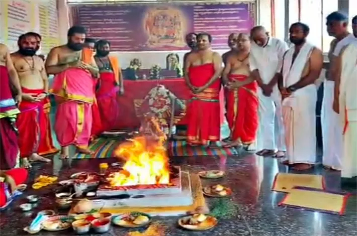 ముకరంపుర, ఏప్రిల్ 17 (విజయ క్రాంతి): వసంత రుతువు చైత్రమాస అమావాస్య శుక్రవారం ను పురస్కరించుకొని వైభ వంగా చండీయాగం జరిగింది. ప్రముఖ జ్యో తిష్య, వాస్తు, ఆగమ, శాస్త్ర పండితుడు నమిలకొండ రమణాచార్య స్వామి ఆధ్వర్యంలో దేవుళ్లపురి పంచముఖ ఆంజనేయ స్వామి దేవాలయంలోని యజ్ఞశాలలో నవ చండీయాగాన్ని నిర్వహించారు.