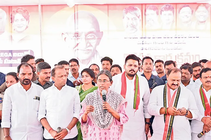 ఉపాధి కార్మికుల హక్కులను కాలరాస్తే ఊరుకోబోమని హెచ్చరించారు. పార్టీ జాతీయ అధ్యక్షుడు మల్లికార్జున ఖర్గే, పార్టీ అధినేతల మార్గదర్శకంలో దేశవ్యాప్త ఉద్యమం చేపడతామని ఆమె స్పష్టం చేశారు. ఈ ఉద్యమంలో అందరూ భాగస్వాములు కావాలని ఆమె కోరారు. పీసీసీ అధ్యక్షుడు మహేశ్కుమార్గౌడ్ మాట్లాడుతూ.. మహాత్మాగాంధీ పేరు మార్చడమే కాకుండా నిధులపై ప్రధాని మోదీ కోత పెడుతున్నారని విమర్శించారు. రూ.100 కు కేంద్రం రూ.60 ఇస్తే మిగిలిన రూ.40 మనమే పెట్టుకోవాలని ఆంక్షలు పెడుతూ రాష్ట్రంపై భారం మోపుతున్నారని విమర్శించారు.