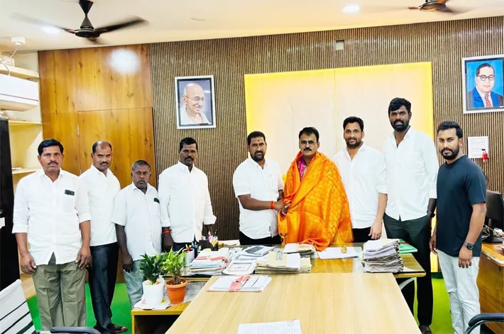 చేవెళ్ళ మార్చి 5(విజయక్రాంతి): నూతనంగా చెవెళ్ల ఆర్డీవోగా బాధ్యతలు చేపట్టిన పార్థసింహ రెడ్డిని చేవెళ్ల మునిసిపల్ 10వ వార్డ్ కౌన్సిలర్ పెద్దొళ్ళ దయాకర్ ఆర్డీవో కార్యాలయంలో గురువారం శాలువాతో సన్మానించి స్వాగతం పలికారు. అనంతరం స్థానిక విషయాలు కాసేపు ముచ్చట్టించిన క్రమంలో ఇక్కడి ప్రజలు అధికారులు నెరవేర్చే ఉద్యోగ బాధ్యతలకు సహకరిస్తారని చెప్పారు.