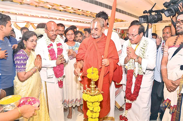 హైదరాబాద్, ఫిబ్రవరి 20 (విజయక్రాం తి): శ్రీశ్రీశ్రీ త్రిదండి చిన శ్రీమన్నారాయణ రామానుజ జీయర్ స్వామి దిల్సుఖ్నగర్లో ఏర్పాటు చేసిన వైశ్యరాజు జ్యువెలర్స్ నూతన షోరూంను శుక్రవారం సందర్శించి, జ్యోతి ప్రజ్వలన, పూజా కార్యక్రమంలో పాల్గొన్నారు. ఈ కార్యక్రమం సాంప్రదాయ ఆచారాలు, వేద మంత్రోచ్ఛారణలతో ప్రారంభమైంది. స్వామివారి విజ్ఞానం, శ్రేయస్సు, శుభ ప్రారంభాలకు ప్రతీకగా ఉత్సవ దీపాన్ని వెలిగించారు.