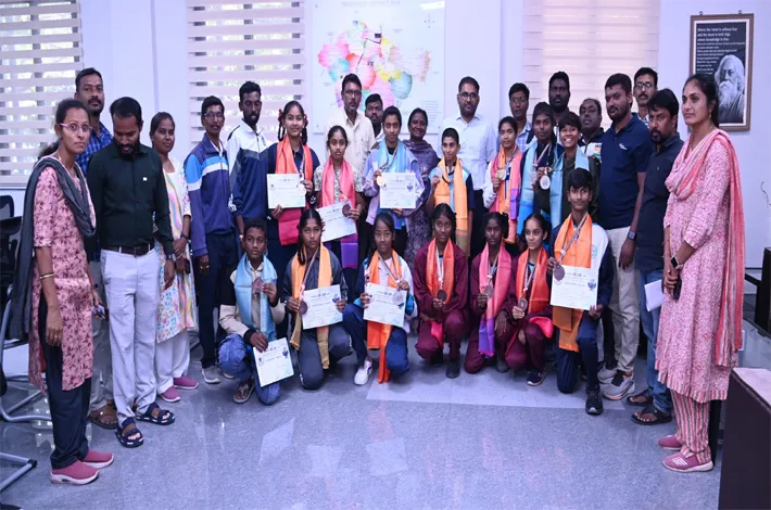 సీఎం కప్ రాష్ట్రస్థాయి పోటీలలో రాణించిన విద్యార్థుల సన్మానంలో జిల్లా కలెక్టర్ కోయ శ్రీహర్ష