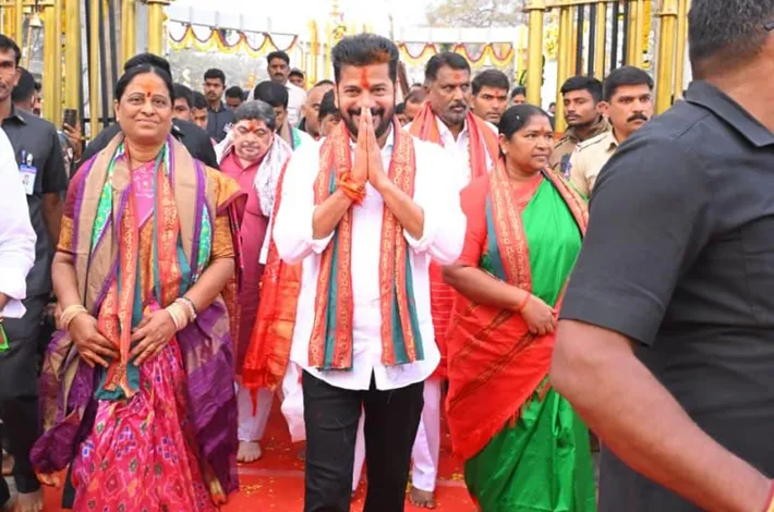 హైదరాబాద్: తెలంగాణ ముఖ్యమంత్రి రేవంత్ రెడ్డి(CM Revanth Reddy) సోమవారం నాడు ములుగు జిల్లాలోని మేడారంలో గిరిజన దేవతలైన సమ్మక్క సారలమ్మ పునరుద్ధరించిన ఆలయాన్ని ప్రారంభించారు. జనవరి 28 నుండి 31 వరకు ఇక్కడే గిరిజన పండుగ 'మహా జాతర' జరగనుంది. తన కుటుంబ సభ్యులు, క్యాబినెట్ సహచరులతో కలిసి రెడ్డి సమ్మక్క-సారలమ్మలకు తొలి మొక్కులు చెల్లించుకున్నారు. మనవడితో కలిసి సీఎం రేవంత్ రెడ్డి తులాభారం, వన దేవతలకు నిలువెత్తు బెల్లాన్ని సమర్పించారు. గిరిజనుల ఆరాధ్యదైవమైన సమ్మక్క, సారలమ్మ, గోవిందరాజు, పగిడిద్ద రాజుల 'గద్దెలు'లను రాష్ట్ర ప్రభుత్వం 101 కోట్ల రూపాయలతో పునర్నిర్మించింది.2026వ సంవత్సరం 'మహా జాతర'కు వచ్చే భక్తుల సౌకర్యార్థం రూ. 150 కోట్ల వ్యయంతో అభివృద్ధి పనులను చేపట్టింది.