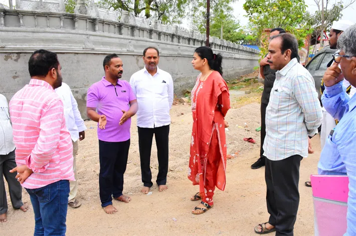 ఈ సందర్భంగా కలెక్టర్ గరిమ అగ్రవాల్ మాట్లాడారు. ఆర్చి, ప్రాకారం సాలహారంతో కలిసి, కమాన్ నిర్మాణం, మార్బుల్ ఫ్లోరింగ్ పనులు గడువులోగా పూర్తి చేయాలని ఆదేశించారు. నిర్మాణాల విషయమై అధికారులకు పలు సూచనలు చేశారు. పరిశీలనలో పంచాయతీ రాజ్ శాఖ ఈఈ సుదర్శన్ రెడ్డి, డీఈ విష్ణువర్ధన్, తహసీల్దార్ జయంత్ కుమార్, అగ్రహారం అంజన్న ఆలయ ఈఓ ఉడుతల వెంకన్న తదితరులు ఉన్నారు.