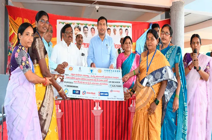 ఈ సందర్భంగా కలెక్టర్ మాట్లాడుతూ... మహిళ సంఘాలకు అందించిన ఈ నిధులు డీబీటీ పద్దతి ద్వారా నేరుగా సంఘాల బ్యాం కు ఖాతాల్లో జమ అవుతాయని తెలిపారు. మహిళలు కట్టిన వడ్డీ భారాన్ని ప్రభుత్వమే భరిస్తూ తిరిగి చెల్లిస్తోందని పేర్కొన్నారు. ఈ డబ్బును కుటుంబ అవసరాలు, పిల్లల చదువులు, ఆరో గ్యం లేదా వ్యాపార విస్తరణకు వినియోగించుకొని ఆర్థికంగా ఎదగాలని సూచించారు. పట్టణంలో సుమారు 11,000 మంది మహిళలకు (దాదాపు 30% కుటుంబాలకు) దీని ద్వారా లబ్ధి చేకూరుతోందని అన్నారు. మహిళలు ఇప్పటికే ఇందిరా మహి ళా శక్తి క్యాంటీన్లు, విజయ డెయిరీ పార్లర్లు, స్కూల్ యూనిఫామ్ కుట్టు పని, పెట్రోల్ బంకుల నిర్వహణలో రాణిస్తున్నారని, అలాగే ఆన్లైన్ మార్కెటింగ్ ద్వారా ఉత్పత్తులను విక్రయించేలా ప్రోత్సహిస్తున్నామన్నారు. ఈ కార్యక్రమంలో మున్సిప ల్ కమిషనర్ రాజు, డి.ఎం.సి మెప్మా శ్రీనివాస్, టి.ఎం.సి మెప్మా భాగ్యలక్ష్మి, సిబ్బంది, ఆర్.పి.లు, మహిళా సంఘాల సభ్యులు పాల్గొన్నారు.