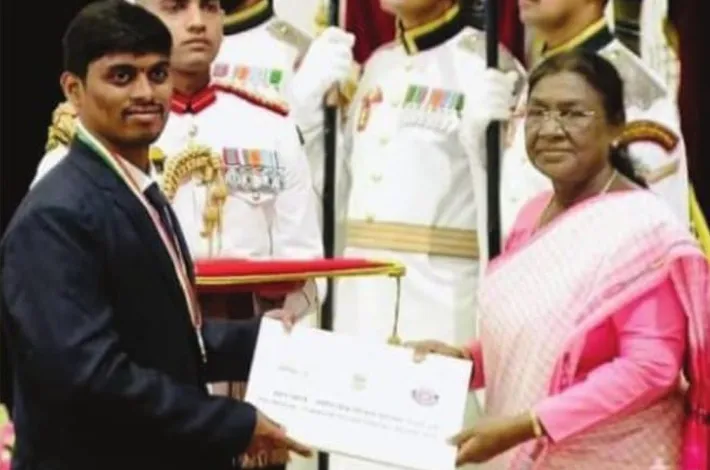 కొత్తపల్లి (విజయక్రాంతి): జాతీయ సేవా పథకంలో రాజన్న సిరిసిల్ల జిల్లా వేములవాడ మండలం నమిలగుండు పల్లె గ్రామస్థుడైన వంగపల్లి మణి సాయివర్మ విద్యార్థి వాలంటీర్ గా విశేష సేవలను గుర్తిస్తూ భారత రాష్ట్రపతి ద్రౌపతి ముర్ము చేతుల మీదుగా జాతీయ స్థాయిలో ఉత్తమ ఎన్.ఎస్.ఎస్. వాలంటీర్ గా అవార్డును స్వీకరించిన సందర్భంగా తెలంగాణ కుమ్మర సంఘం రాష్ట్ర శాఖ కోశాధికారి నామీలకొండ ప్రభాకర్ అభినందనలు వ్యక్తం చేశారు. తెలంగాణ కుమ్మర సంఘం కరీంనగర్ జిల్లా కార్యాలయంలో నామీలకొండ ప్రభాకర్ రాష్ట్ర కోశాధికారి అధ్యక్షతన సమావేశం ఏర్పాటు చేయనైనది. ఈ సందర్భంగా మాట్లాడుతూ మణి సాయివ ర్మను స్పూర్తిగా తీసుకుని కుమ్మర సామాజిక వర్గం యువత దేశాభివృద్ధిలో భాగస్వాములు కావాలని పిలుపునిచ్చారు.