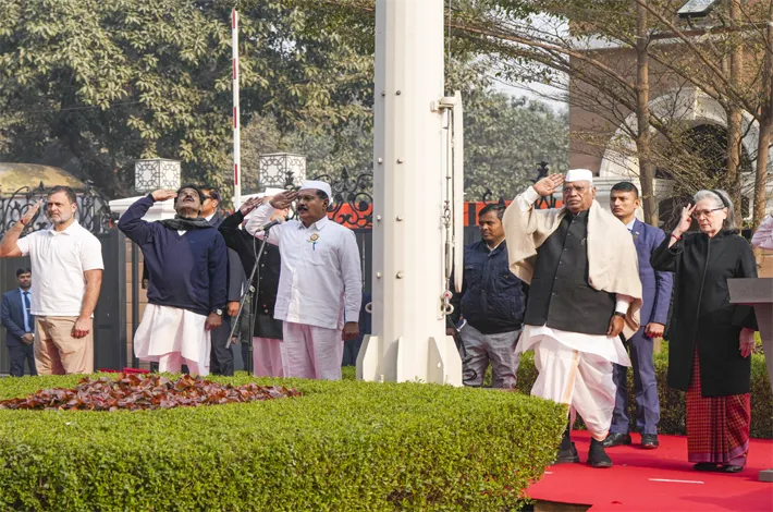 మహాత్మా గాంధీ, జవహర్లాల్ నెహ్రూ, ఇందిరా గాంధీ వంటి మహనీయుల అడుగుజాడల్లో ముందుకు వెళ్తామన్నారు. కేం ద్రంలోని బీజేపీ ప్రభుత్వం ప్రజల్లో మతపరమైన ద్వేషాలను ప్రోత్సహిస్తోందని, అలాం టి పోకడలకు వ్యతిరేకంగా కాంగ్రెస్ పార్టీ ఉద్యమిస్తుందని ప్రకటించారు. రాజ్యాంగం అమలులోకి వచ్చి 75 ఏళ్లు పూర్తవుతున్న శుభ తరుణంలో పార్టీ మరిన్ని ప్రజా ఉద్యమాలకు శ్రీకారం చుడతామన్నారు. కేంద్రం ఇటీవల తీసుకొచ్చిన వీబీ జీ రామ్ జీ చట్టం ఉప సంహరించుకునేంత వరకు తా ము పోరాటం చేస్తామని ప్రతినబూనారు. జనవరి 5వ తేదీ నుంచి దేశవ్యాప్త ఉద్యమం చేపడుతామని ప్రకటించారు.