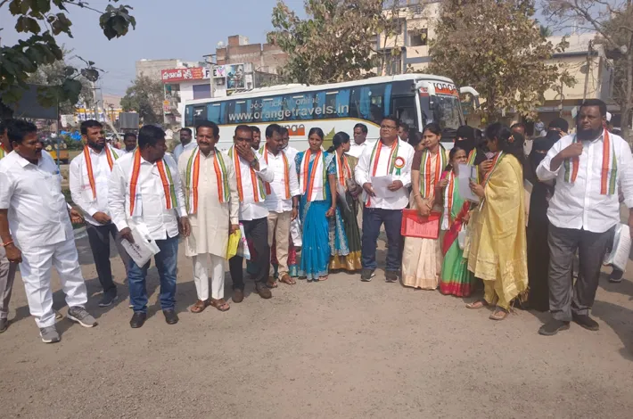 కామారెడ్డి,(విజయక్రాంతి): కామారెడ్డి మున్సిపల్ కార్యాలయానికి ప్రైవేటు బస్సులో సోమవారం ఉదయం 10:30 గంటలకు చేరుకున్న కాంగ్రెస్ కౌన్సిలర్లు, చైర్పర్సన్ అభ్యర్థి ఇప్ప ఉమారాణి శ్రీనివాస్ తో పాటు కాంగ్రెస్ కౌన్సిలర్లు చేరుకున్నారు. పోలీసులు మున్సిపల్ కార్యాలయం వద్ద తనిఖీ చేపట్టి కార్యాలయంలోకి పంపిన అధికారులు. ప్రమాణ స్వీకార కార్యక్రమానికి హాజరైన కాంగ్రెస్ కౌన్సి లర్లు, చైర్ పర్సన్ అభ్యర్థి ఇప్ప ఉమారాణి తో పాటు మహిళా కాంగ్రెస్ కౌన్సిలర్ లు, కార్యాలయంలోకి వెళ్లారు.