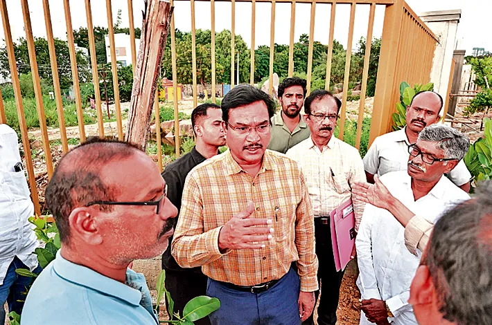 వాసవి సుచిర్ ఇండియా లేఅవుట్లో 9 మీటర్లు ఉండాల్సిన నాలాను కేవ లం 2 మీటర్లకు కుదించడాన్ని గమనించా రు. నల్లగండ్ల పెద్ద చెరువుకు వచ్చే వరద కాలువలను కబ్జా చేయడమే కాకుండా, చెరువు అలుగును మత్తడి మార్చి, చెరువులోనే బండ్ నిర్మించారని అపర్ణ నిర్మాణ సంస్థపై వచ్చిన ఫిర్యాదులపై ఆయన స్థానికులతో మాట్లాడి వివరాలు సేకరించారు. ఈ సందర్భంగా కమిషనర్ మాట్లాడుతూ.. ఈ అన్ని వివాదాలపై త్వరలోనే నిర్మాణ సంస్థల ప్రతినిధులు, స్థానిక ప్రజలతో ఒక సంయుక్త సమావేశం ఏర్పాటు చేసి, శాశ్వత పరిష్కారం చూపుతామని హామీ ఇచ్చారు.