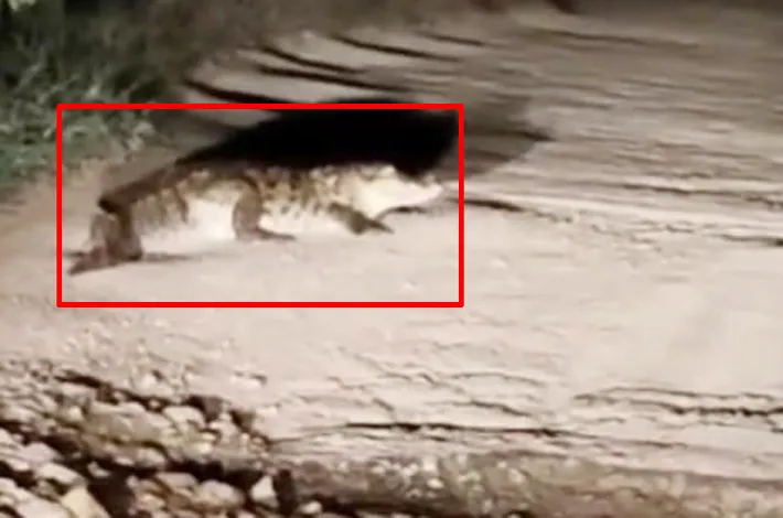కల్వరాలలో రోడ్డుపై ముసలి కలకలం