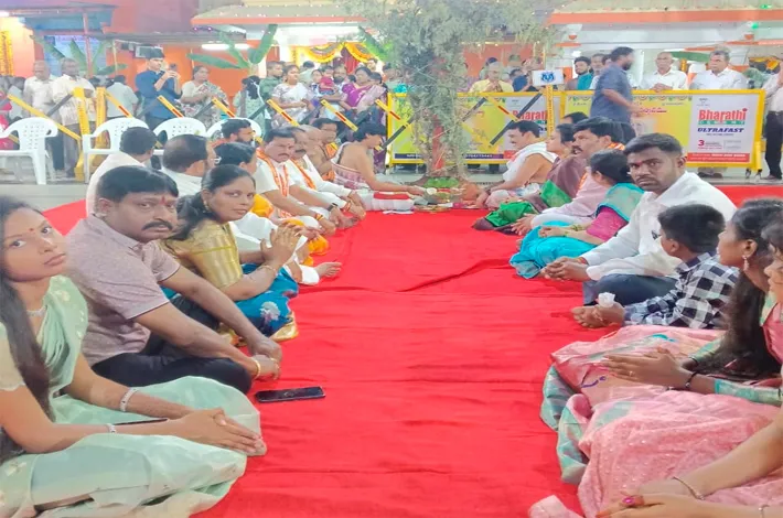 ఎల్బీనగర్, అక్టోబర్ 3 : ప్రసిద్ధ కర్మన్ ఘాట్ హనుమాన్ ఆలయంలో గురువారం, శుక్రవారం దసరా పండుగ ఉత్సవాలు వైభవంగా జరిగాయి. నవరాత్రుల్లో భాగంగా చివరి రోజు విజదశమి (దసరా) రోజున కర్మన్ ఘాట్ హనుమాన్ ఆలయంలో ఉన్న దుర్గాదేవి గురువారం రాజరాజేశ్వరీదేవి అలంకారములో భక్తులకు దర్శనమిచ్చారు. ఆలయంలో చండీహోమం, పూర్ణాహుతి, శమీపూజ, రావణ దహనం నిర్వహించారు.