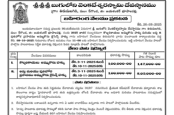 బుగులోని జాతర వేలం పాటల తేదీలు ఖరారు