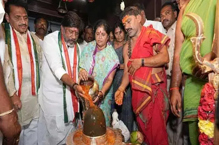 వైరా నది తీరాన కొలువై ఉన్న మృత్యుంజయ స్వామి ఆలయానికి చేరుకున్న ఉప ముఖ్యమంత్రి దంపతులకు ఆలయ అధికారులు, స్థానిక ప్రజా ప్రతినిధులు ఘన స్వాగతం పలికారు. ఆలయ వేద పండితులు పూర్ణకుంభంతో ఆశీర్వచనాలు పలికి గర్భాలయంలోకి తీసుకెళ్లారు. అనంతరం దంపతులు స్వామివారికి రుద్రాభిషేకం, పూజలు నిర్వహించారు.