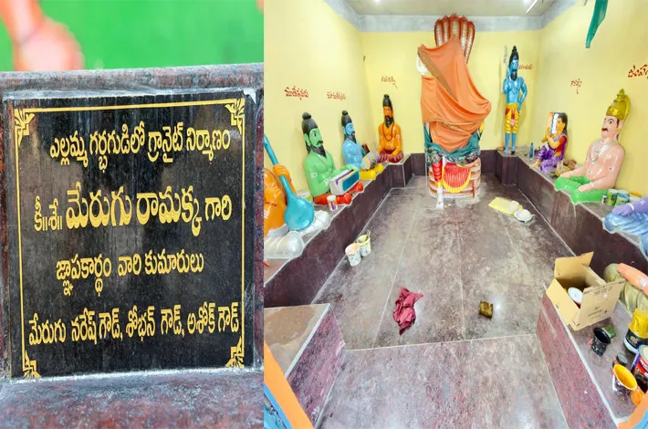 ధర్మపురి,(విజయక్రాంతి): తమ ఇంటి ఇలవేల్పు అయిన శ్రీ రేణుక ఎల్లమ్మ ఆలయాన్ని అభివృద్ధి చేయడమే తమ లక్ష్యమని శ్రీరామ భక్త ఆంజనేయ స్వామి ఆలయ కమిటీ చైర్మన్ మెరుగు నరేష్ గౌడ్ అన్నారు. మార్చి నెలలో జరిగే శ్రీరేణుక ఎల్లమ్మ కొలుపు లో భాగంగా ఆలయ గర్భ గుడిలో ఆలయ చైర్మన్ యొక్క తల్లి కీశే మెరుగు రామక్క జ్ఞాపకర్ధం ఆమె కుమారులైనటువంటి మెరుగు అశోక్ గౌడ్, మెరుగు శోభన్ గౌడ్, మెరుగు నరేష్ గౌడ్ లు సుమారు రూ.1 లక్ష విలువ గల గ్రానైట్ ను(పాలరాతి) బండను అమ్మ వారి ఆలయంలో వెయిస్తూ ఇంటి ఇలవేల్పు అయిన శ్రీ రేణుక ఎల్లమ్మ పై వారికి ఉన్న భక్తి శ్రద్ధలను చాటుకున్నారు. గతంలో కూడా ఆలయం చుట్టూ నరేష్ గౌడ్ చోరువ తో లచ్చుల గారి శ్రీనివాస్ గౌడ్ సుమారు రూ.ఒక లక్ష యాభై వేలతో ప్లోరింగ్ చేయడం జరిగిందని తెలిపారు.రాబోయే రోజుల్లో ఆలయాన్ని మరింత అభివృద్ధి పథంలో నడిపించేందుకు నిరంతరం తమ వంతు కృషి చేస్తామని తెలిపారు.