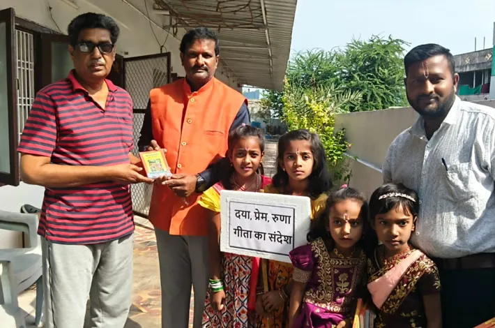 మంచిర్యాల టౌన్ (విజయక్రాంతి): మంచిర్యాల జిల్లా కేంద్రంలోని IIT చుక్కా రామయ్య హైస్కూల్లో సోమవారం భగవద్గీత జయంతి ఉత్సవాలు ఘనంగా నిర్వహించారు. ప్రతి ఏడాది మార్గశిర మాసం శుక్ల పక్షం ఏకాదశిన గీతా జయంతిని పాఠశాలలో జరుపుతుంటారు. ఇందులో భాగంగా విద్యార్థులు సాంప్రదాయ వేషాధారణలో పాల్గొని ర్యాలీ నిర్వహించారు. అనంతరం సామూహిక గీతా పఠనం చేశారు. ఈ సందర్భంగా 500 భగవద్గీత పుస్తకాలను విద్యార్థులు ఇంటింటికి తిరిగి ఉచితంగా పంపిణీ చేస్తూ గీతా మహిమను ప్రజలకు తెలియజేశారు. రాంనగర్ లోని భగవద్గీత ధ్యాన మండలిలో నిర్వహించిన వివిధ కార్యక్రమాల్లో పాల్గొన్నారు.
