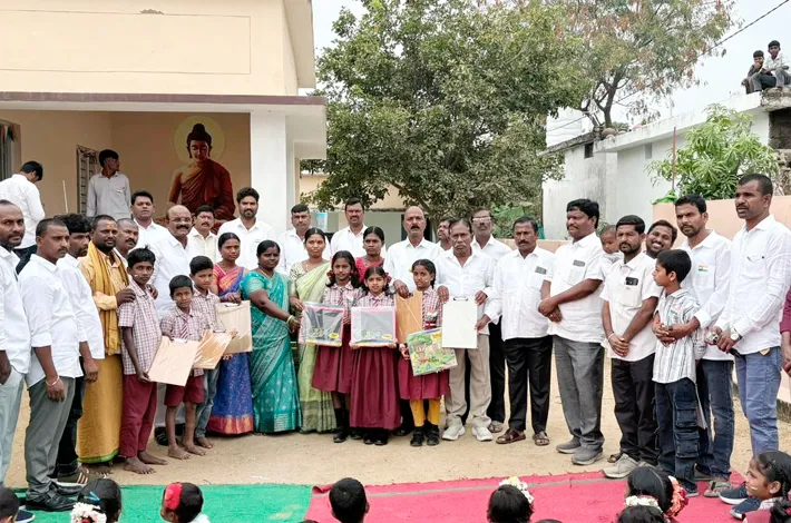 పెద్దమందడి జనవరి 26 : 77వ గణతంత్ర దినోత్సవ వేడుకలను పురస్కరించు కొని, పెద్దమందడి మండల కేంద్రంలోని ప్రాథమిక పాఠశాలలో విద్యార్థుల ముఖా ల్లో చిరునవ్వులు విరిశాయి. స్థానిక 8వ వా ర్డు మెంబర్ జంగం పద్మ శివ విద్యార్థుల చదువుపై ఉన్న మక్కువతో, వారికి అండగా నిలవాలనే సంకల్పంతో అద్భుతమైన సేవా కార్యక్రమాన్ని చేపట్టారు.పాఠశాలలో చదువుతున్న నిరుపేద విద్యార్థులకు చదువు భా రం కాకూడదనే ఉద్దేశంతో పద్మ శివ తన సొంత ఖర్చులతో నోట్ బుక్స్, పెన్నులు, రై టింగ్ ప్యాడ్లు మరియు స్టేషనరీ కిట్లను పంపిణీ చేశారు.