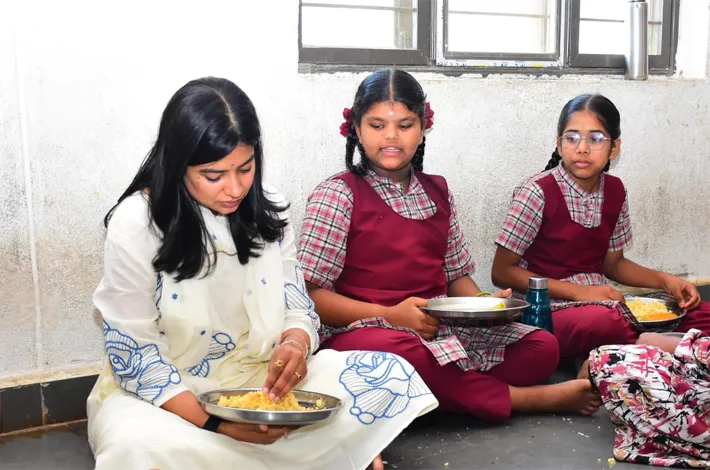 విద్యార్థులతో కలిసి.. అల్పాహారం తిన్న జిల్లా కలెక్టర్