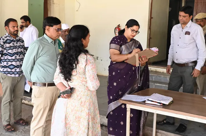 నిర్మల్ (విజయక్రాంతి): కలెక్టరేట్ సమీపంలో గల ఈవీఎం గోదాం కేంద్రాన్ని సాధారణ తనిఖీల్లో భాగంగా శనివారం జిల్లా కలెక్టర్ అభిలాష అభినవ్ తనిఖీ చేశారు. ఈ సందర్భంగా అన్ని రిజిస్టర్లను తనిఖీ చేశారు. సీసీ కెమెరాల పనితీరు పరిశీలించారు. పోలీసు సిబ్బంది నిరంతరం మెరుగైన భద్రతను నిర్వహించాలని తెలిపారు. ఎల్లప్పుడు అగ్నిమాపక పరికరాలను అందుబాటులో ఉంచుకోవాలన్నారు. ఈ కార్యక్రమంలో జిల్లా అదనపు కలెక్టర్ (రెవెన్యూ) కిషోర్ కుమార్, అధికారులు సర్ఫరాజ్, రాజశ్రీ, ఇతర అధికారులు, సిబ్బంది, తదితరులు పాల్గొన్నారు.